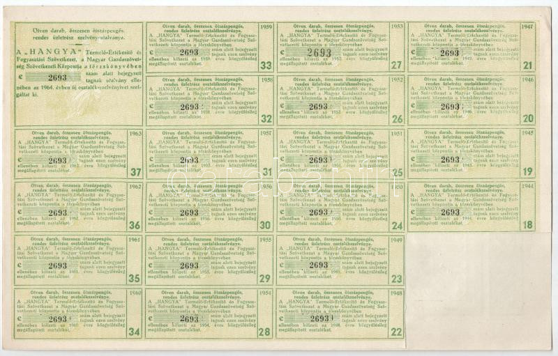 Beschreibung: Budapest 1942. "Hangya Termelő-Értékesítő és Fogyasztási Szövetkezet" üzletrésze 500P-ről, szelvényekkel, szárazpecséttel (2x) sorszámkövetők T:I- tűlyukak