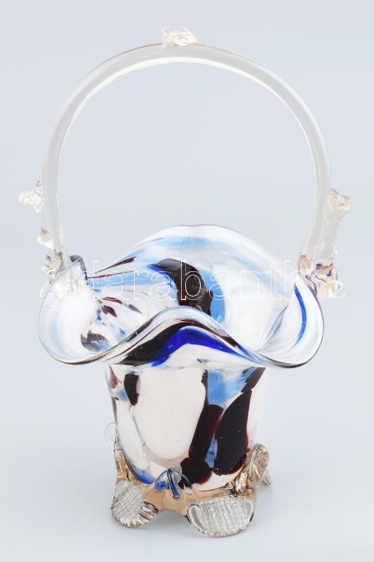 Beschreibung: Murano üveg kosár, jelzés nélkül, hibátlan, m: 21 cm