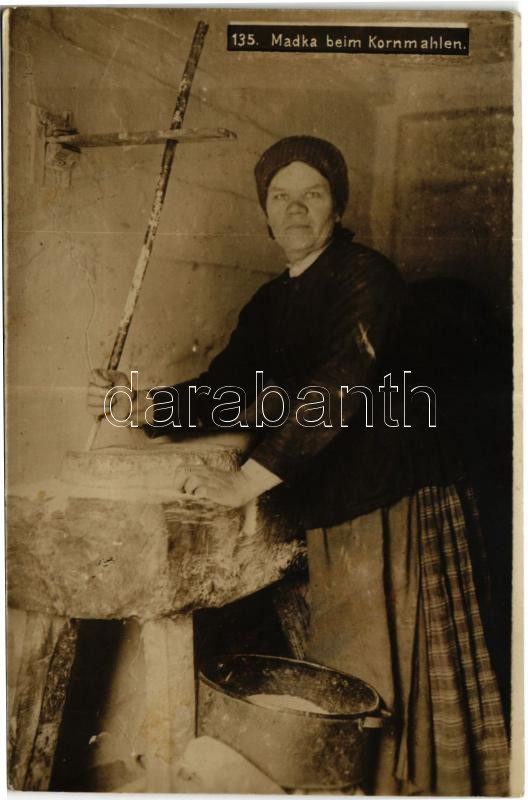 Madka beim Kornmahlen / folklore from Galicia and Volhynia, woman grin... https://www.darabanth.com/de/435-Fernauktion/435.0/Ansichtskarten/Folklore~2500027/Madka-beim-Kornmahlen-folklore-from-Galicia-and-Volhynia-woman-grinding-corn~II2824353