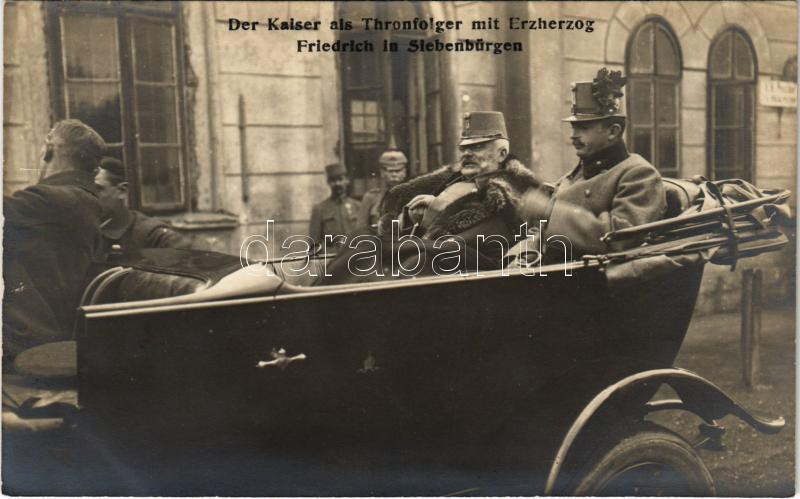 Der Kaiser als Thronfolger mit Erzherzog Friedrich in Siebenbürgen / I... https://www.darabanth.com/de/435-Fernauktion/435.0/Ansichtskarten/Herrscher-Politiker-Konigshauser~2500084/Der-Kaiser-als-Thronfolger-mit-Erzherzog-Friedrich-in-Siebenburgen-IV-Karoly-es-Frigyes-foher~II2823833
