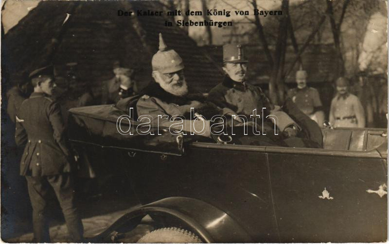 Der Kaiser mit dem König von Bayern in Siebenbürgen / IV. Károly és a bajor király Erdélyben autóban. Phot. Br. Schuhmann Wien 1918