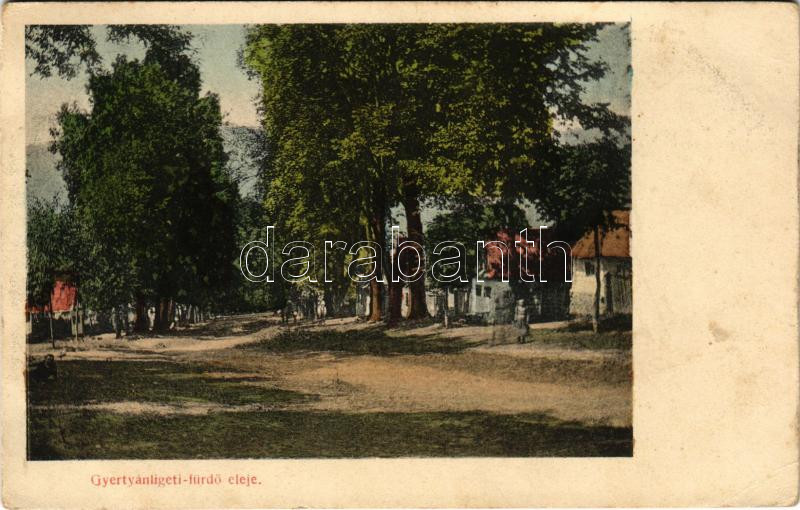 Beschreibung: 1910 Gyertyánliget, Polyána-Gyertyánliget, Kabola Polyána, Kobyletska Poliana (Máramaros, Maramures); fürdő eleje / spa street (EK)