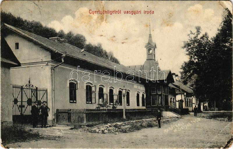 1910 Gyertyánliget, Polyána-Gyertyánliget, Kabola Polyána, Kobyletska Poliana (Máramaros, Maramures); Vasgyári iroda. Kabát Emil felvétele, Weingarten Zsigmond kiadása / office of the iron works (factory) (EB)