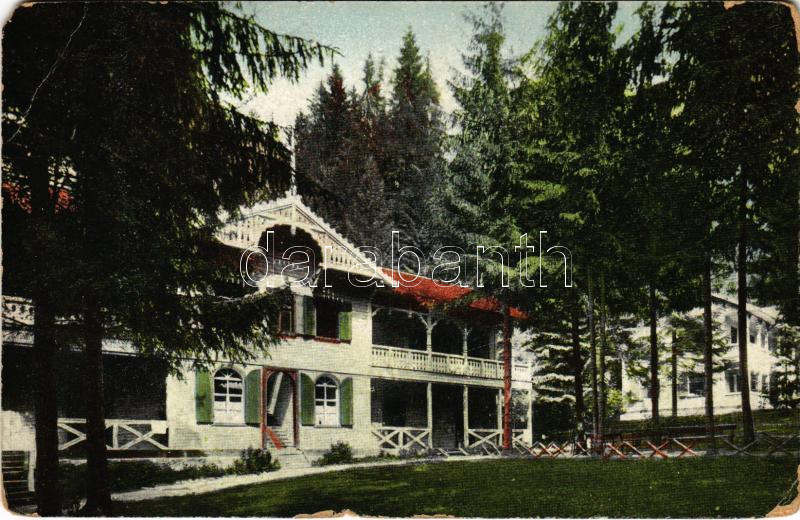 Beschreibung: Gyertyánliget, Polyána-Gyertyánliget, Kabola Polyána, Kobyletska Poliana (Máramaros, Maramures); fürdő részlete. Wizner és Dávid kiadása / spa, bath(EM)