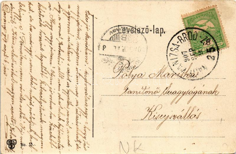 1907 Császári és Királyi Haditengerészet Dunaflottilla monitorja a Királyi várnál Budapesten / K.u.K. Kriegsmarine Donauflottille / Austro-Hungarian Navy Danube Fleet River Guard ship near the Royal Castle in Budapest. S.L.B. No. 35. + "NAGY-KANIZSA - BROD 25. SZ." vasúti mozgóposta bélyegző (fl)