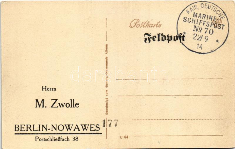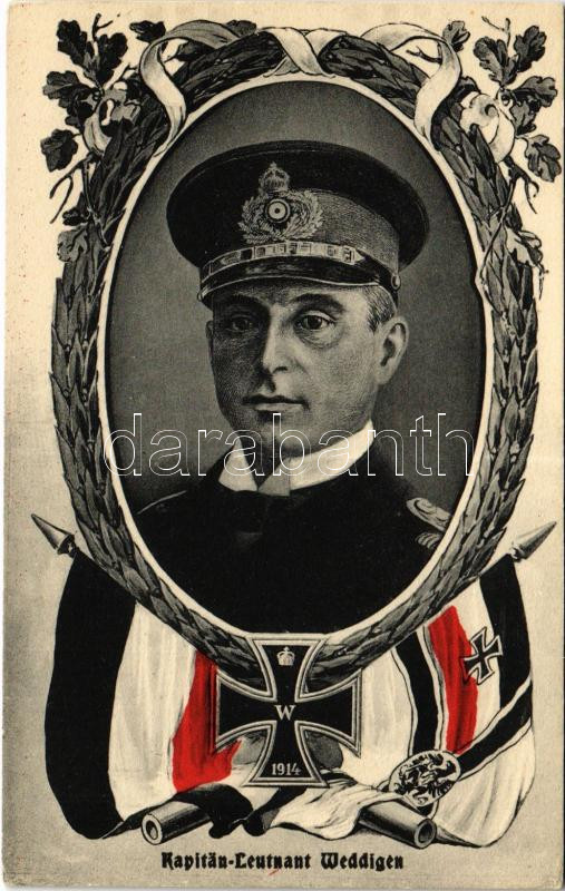 Kapitän-Leutnant Weddigen / Otto Weddigen, German Navy (Kaiserliche Marine) U-boat commander. Art Nouveau, flags + "Kais. Deutsche Marineschiffspost No. 70. 22/9. 14."