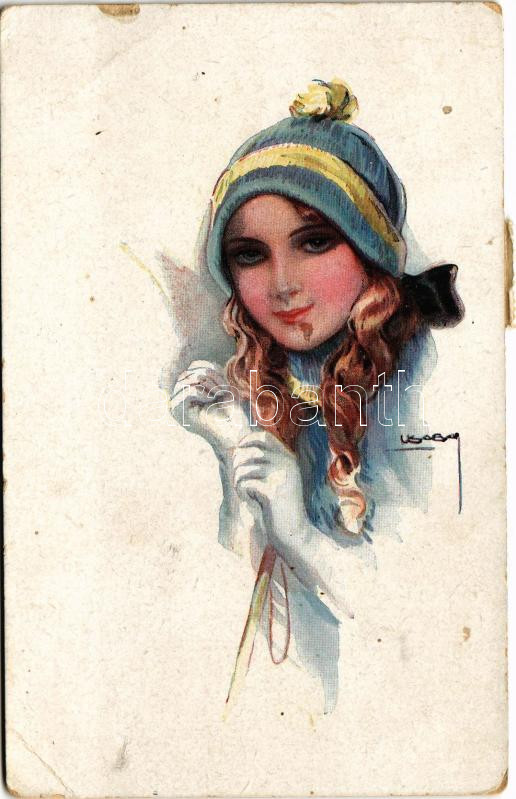 Hölgy / Lady. Erkal Nr. 343/4. s: Usabal (EK) https://www.darabanth.com/de/435-Fernauktion/435.0/Ansichtskarten/Kunstlerkarten~2500068/Holgy-Lady-Erkal-Nr-3434-s-Usabal-EK~II2772031