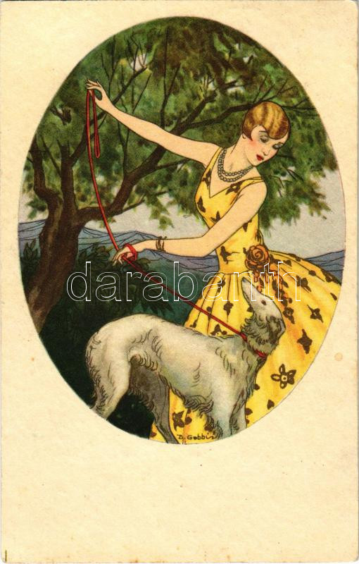 Hölgy agárral / Lady with dog. Élite CCM 2569. s: D. Gobbi https://www.darabanth.com/de/435-Fernauktion/435.0/Ansichtskarten/Kunstlerkarten~2500068/Holgy-agarral-Lady-with-dog-Elite-CCM-2569-s-D-Gobbi~II2821046