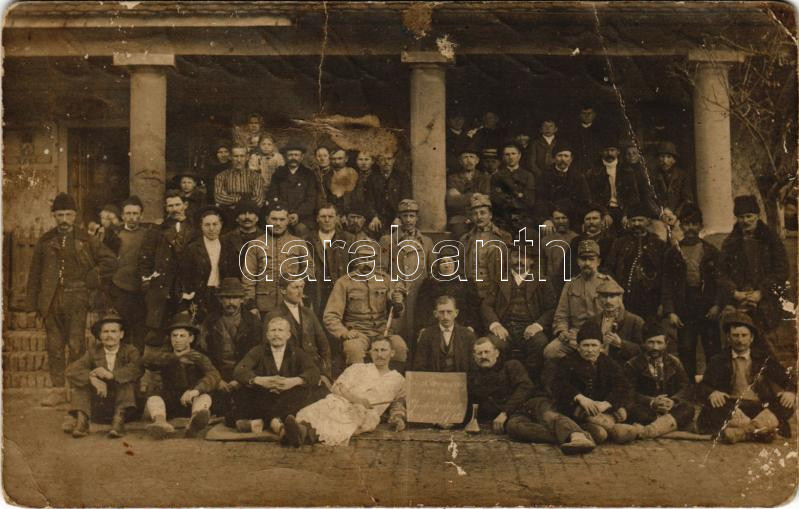 1915 Paripás, Parabuty, Parabutsch, Parabuc, Ratkovo; Zur Erinnerung an das Pferde-Spital Paripás / WWI Austro-Hungarian K.u.K. military, horse hospital in Ratkovo, group of soldiers and staff. photo (fa)