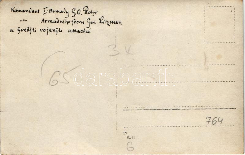 Komandant I. Armady G.O. Rohr, Komandant Armadnihosboru Gen. Litzman a... https://www.darabanth.com/de/435-Fernauktion/435.0/Ansichtskarten/Militaria~2500059/Komandant-I-Armady-GO-Rohr-Komandant-Armadnihosboru-Gen-Litzman-a-svedsti-vojensti-attache-W~II2823920