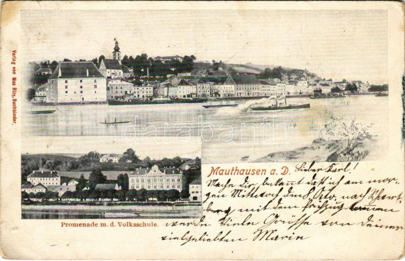 Beschreibung: 1902 Mauthausen, Promenade mit d. Volksschule / school (EK)