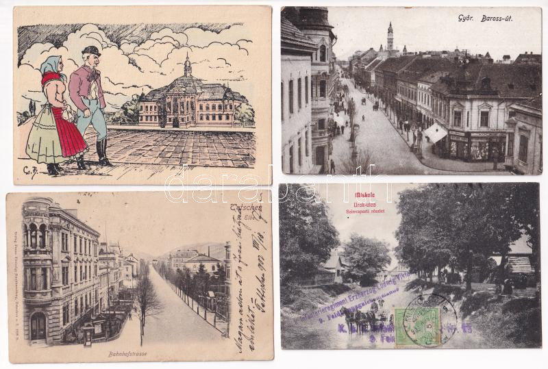 10 db RÉGI történelmi magyar és külföldi város képeslap vegyes minőségben / 10 pre-1945 historical Hungarian and other European town-view postcards in mixed quality
