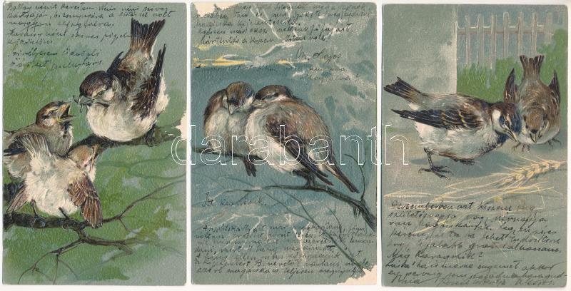 Beschreibung: 3 db RÉGI hosszú címzéses dombornyomott litho képeslap madarakról / 3 pre-1904 embossed litho motive postcards: birds