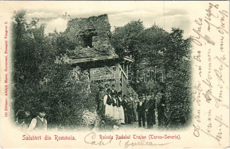 1900 Turnu Severin, Szörényvár; Salutari din Romania, Ruinele Podului ... https://www.darabanth.com/de/435-Fernauktion/435.0/Ansichtskarten/Rumanien~2500063/1900-Turnu-Severin-Szorenyvar-Salutari-din-Romania-Ruinele-Podului-Trajan-ruins~II2818086