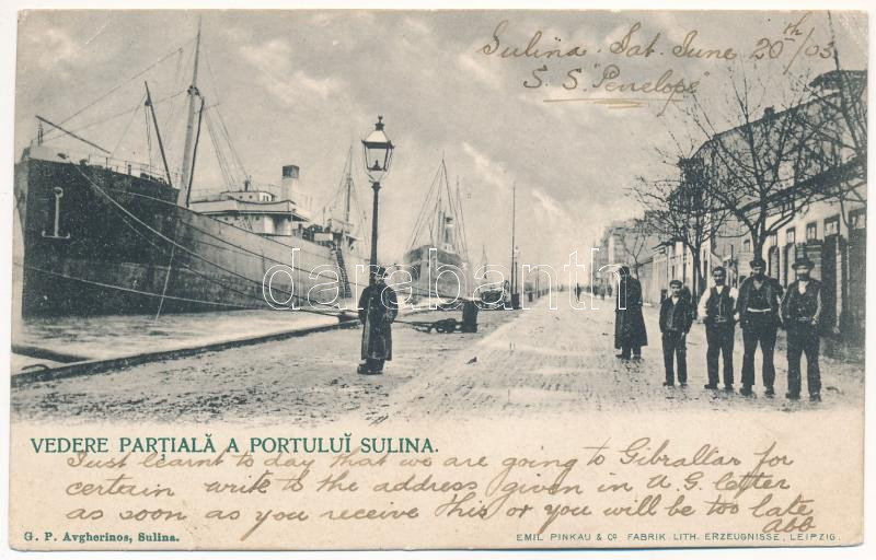 1903 Sulina, Vedere Partiala a Portului / port (EK) https://www.darabanth.com/de/435-Fernauktion/435.0/Ansichtskarten/Rumanien~2500063/1903-Sulina-Vedere-Partiala-a-Portului-port-EK~II2816362