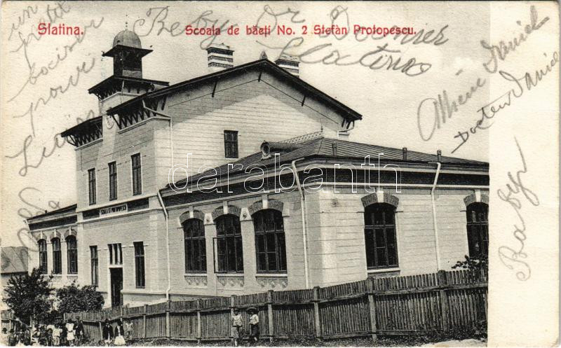 1908 Slatina, Scoala de baeti No. 2. Stefan Protopescu / boys' sc... https://www.darabanth.com/de/435-Fernauktion/435.0/Ansichtskarten/Rumanien~2500063/1908-Slatina-Scoala-de-baeti-No-2-Stefan-Protopescu-boys-school-EK~II2821283