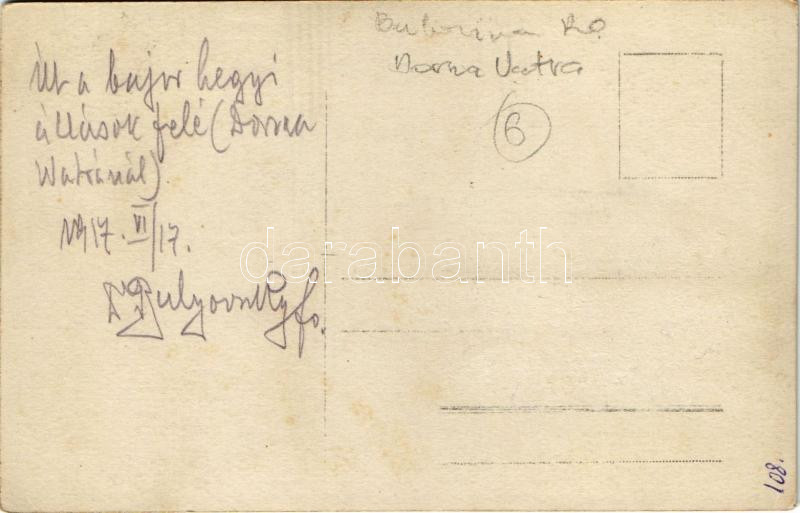 1917 Vatra Dornei, Dornavátra, Bad Dorna-Watra (Bukovina); út a bajorh... https://www.darabanth.com/de/435-Fernauktion/435.0/Ansichtskarten/Rumanien~2500063/1917-Vatra-Dornei-Dornavatra-Bad-Dorna-Watra-Bukovina-ut-a-bajorhegyi-allasok-fele-WWI-A~II2773394