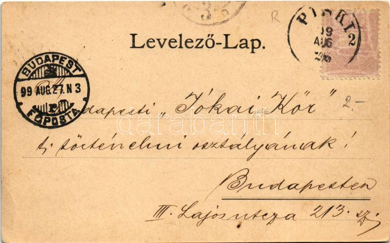 1899 (Vorläufer) Piski, Simeria; A piski csata (F. Breidwieser festménye után), Bem-szobor, emlékmű. Főző József kiadása / Hungarian Revolution of 1848, Battle of Simeria (1849), monument. Art Nouveau, floral (EB)
