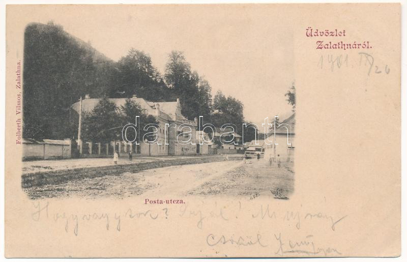 1901 Zalatna, Zlatna; Posta utca. Folberth Vilmos kiadása / street vie... https://www.darabanth.com/de/435-Fernauktion/435.0/Ansichtskarten/Siebenburgen~2500008/1901-Zalatna-Zlatna-Posta-utca-Folberth-Vilmos-kiadasa-street-view-EK~II2816602