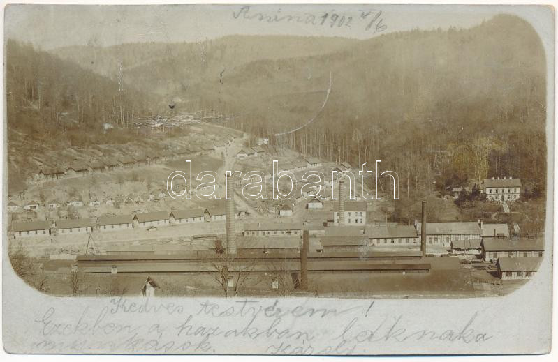 Beschreibung: 1902 Anina, Stájerlakanina, Steierdorf; vasgyári munkáslakások / workers colony of the factory. photo (gyűrődések / creases)