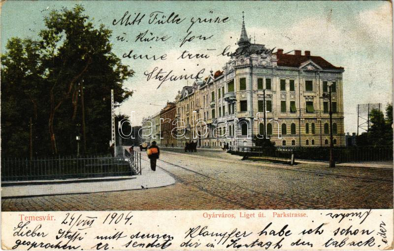 1904 Temesvár, Timisoara; Gyárváros, Liget út / Parkstrasse / Fabric, ... https://www.darabanth.com/de/435-Fernauktion/435.0/Ansichtskarten/Siebenburgen~2500008/1904-Temesvar-Timisoara-Gyarvaros-Liget-ut-Parkstrasse-Fabric-street~II2816665