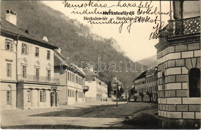 1905 Herkulesfürdő, Baile Herculane; Herkules tér, Sarolta fürdő, Jäge... https://www.darabanth.com/de/435-Fernauktion/435.0/Ansichtskarten/Siebenburgen~2500008/1905-Herkulesfurdo-Baile-Herculane-Herkules-ter-Sarolta-furdo-Jager-Emil-uzlete-Deixner-~II2820755