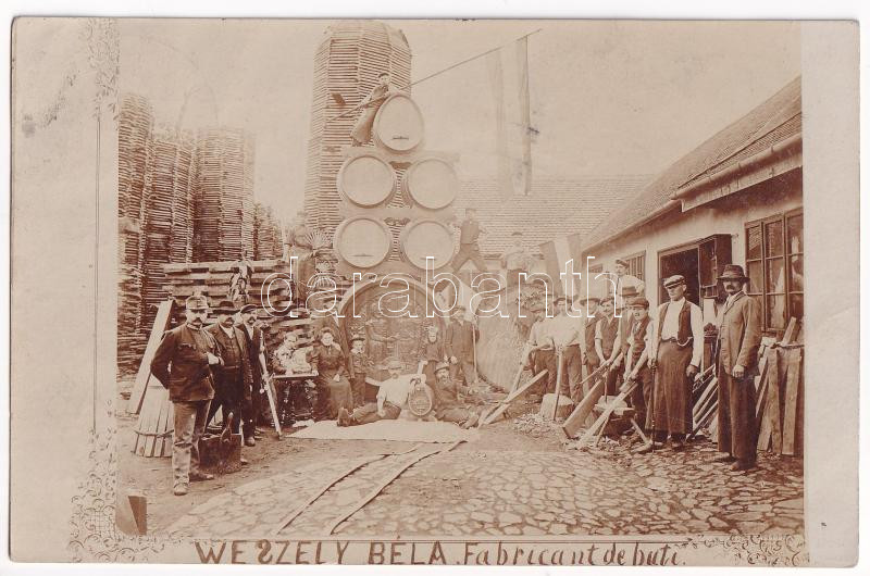 1906 Lippa, Lipova; Weszely Béla hordógyára (saját házában), hátsó udv... https://www.darabanth.com/de/435-Fernauktion/435.0/Ansichtskarten/Siebenburgen~2500008/1906-Lippa-Lipova-Weszely-Bela-hordogyara-sajat-hazaban-hatso-udvar-faraktar-munkas~II2822459