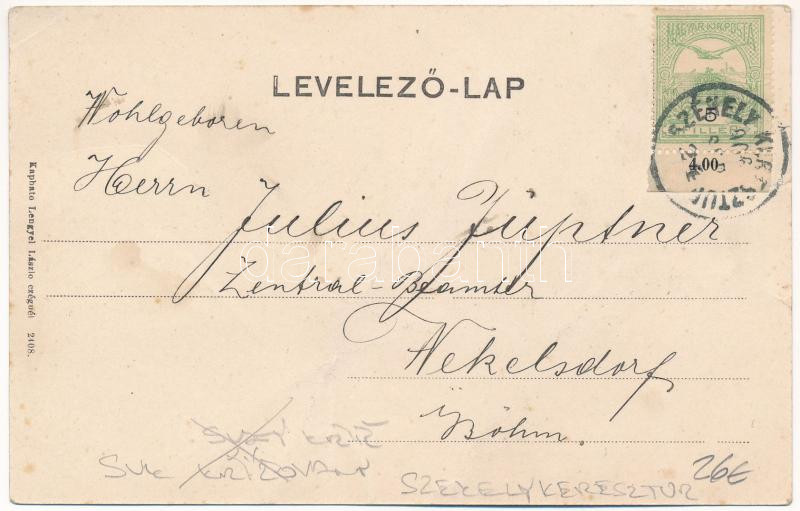 Beschreibung: 1906 Székelykeresztúr, Kristur, Cristuru Secuiesc (Sacuesc); lengyár és környéke / linen factory. Art Nouveau, floral (gyűrődések / creases)