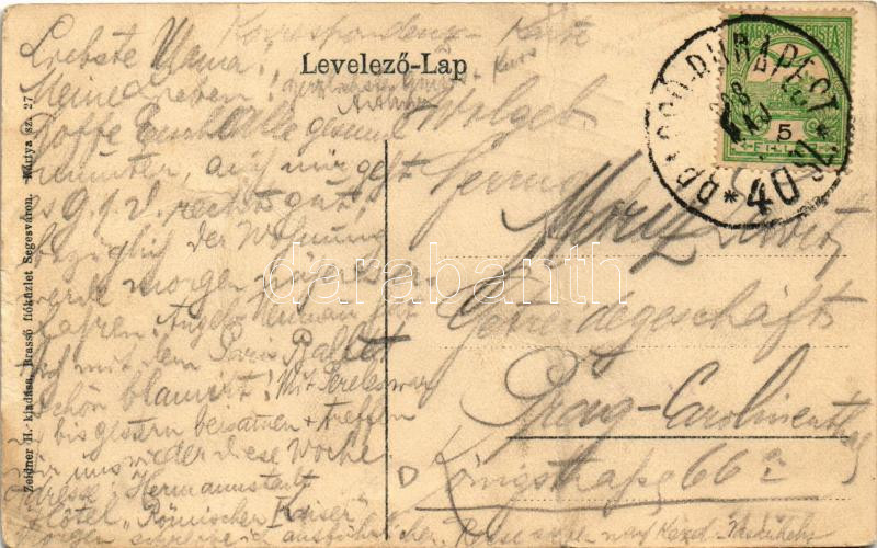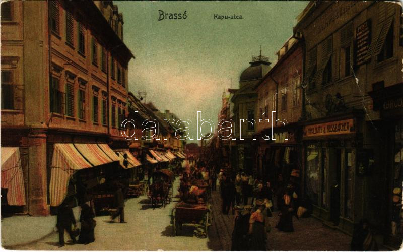 1908 Brassó, Kronstadt, Brasov; Kapu utca, Mihalovits & Nussbacher... https://www.darabanth.com/de/435-Fernauktion/435.0/Ansichtskarten/Siebenburgen~2500008/1908-Brasso-Kronstadt-Brasov-Kapu-utca-Mihalovits-Nussbacher-uzlete-Phonix-Zeidner-H-Ka~II2823001