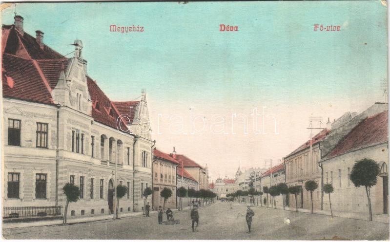 1909 Déva, Fő utca, Megyeház / main street, county hall (EK) https://www.darabanth.com/de/435-Fernauktion/435.0/Ansichtskarten/Siebenburgen~2500008/1909-Deva-Fo-utca-Megyehaz-main-street-county-hall-EK~II2310726