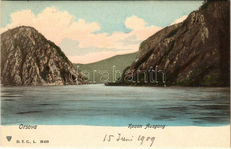 1909 Orsova, Kazán-szoros / Kazan Ausgang / Cazane / gorge https://www.darabanth.com/de/435-Fernauktion/435.0/Ansichtskarten/Siebenburgen~2500008/1909-Orsova-Kazan-szoros-Kazan-Ausgang-Cazane-gorge~II2818865