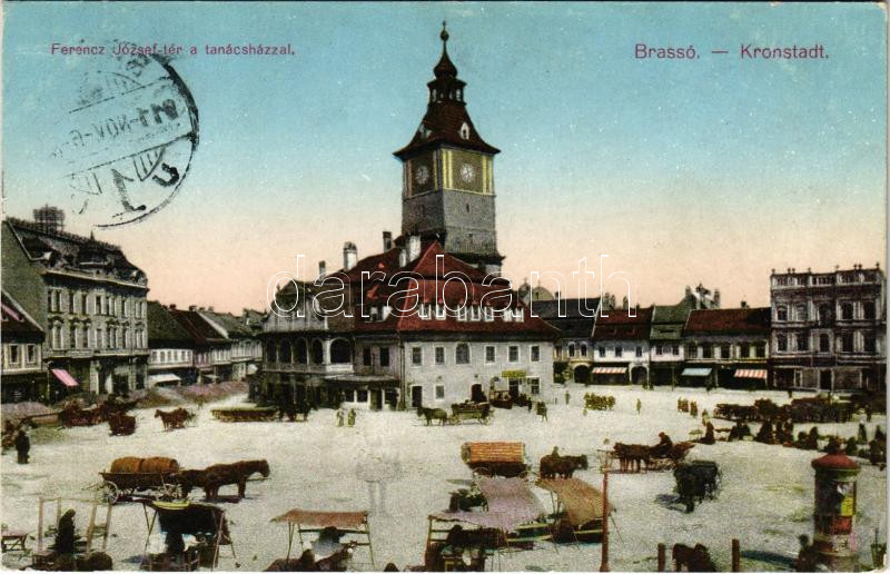 1911 Brassó, Kronstadt, Brasov; Ferenc József tér és tanácsház, piac /... https://www.darabanth.com/de/435-Fernauktion/435.0/Ansichtskarten/Siebenburgen~2500008/1911-Brasso-Kronstadt-Brasov-Ferenc-Jozsef-ter-es-tanacshaz-piac-square-town-hall-mark~II2821693
