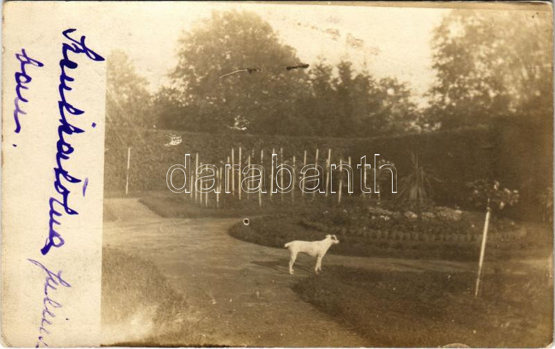 Beschreibung: 1911 Szentkatolna, Catalina; kastély kert kutyával / castle garden. photo