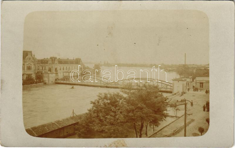 Beschreibung: 1912 Lugos, Lugoj; árvíz a Temes folyón, Haberehrn-palota, Graf K. üzlete, híd / Timis river flood, bridge, shops, palace. photo