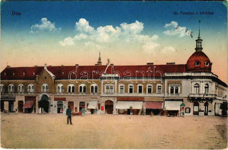 1914 Dés, Dej; Szt. Ferenc rend bérháza, Bíró József és Schapira Arnol... https://www.darabanth.com/de/435-Fernauktion/435.0/Ansichtskarten/Siebenburgen~2500008/1914-Des-Dej-Szt-Ferenc-rend-berhaza-Biro-Jozsef-es-Schapira-Arnold-uzlete-shops-EK~II2817056