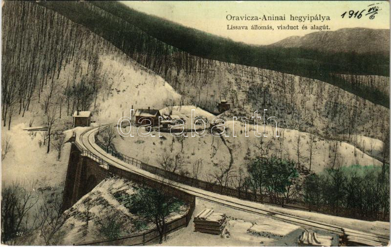 1916 Oravica-Anina, Oravita-Anina; Hegyipálya Lissavai vasútállomással... https://www.darabanth.com/de/435-Fernauktion/435.0/Ansichtskarten/Siebenburgen~2500008/1916-Oravica-Anina-Oravita-Anina-Hegyipalya-Lissavai-vasutallomassal-viadukt-es-alagut-te~II2822990