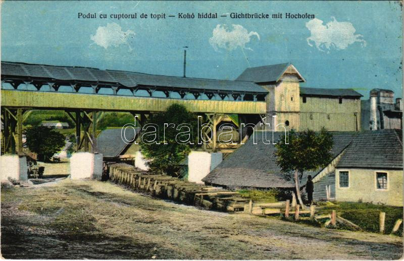 Beschreibung: 1925 Szentkeresztbánya, Vlahita Noua, Minele Lueta (Szentegyháza, Vlahita); Podul cu cuptorul de topit / Kohó híddal. Kamner & Jekelius kiadása / Gichtbrücke mit Hochofen / blast furnace, bridge