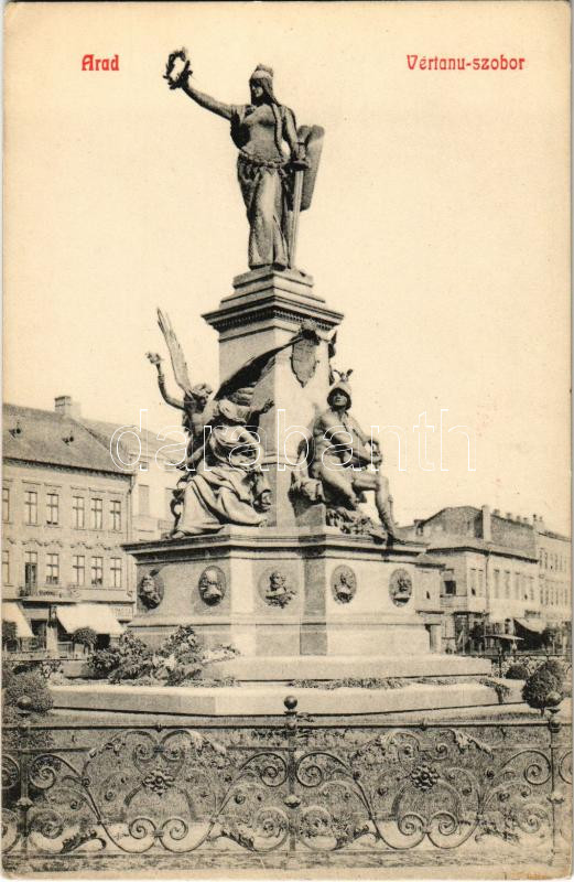 Beschreibung: Arad, Vértanú szobor. Kerpel Izsó kiadása / monument, statue (EK)