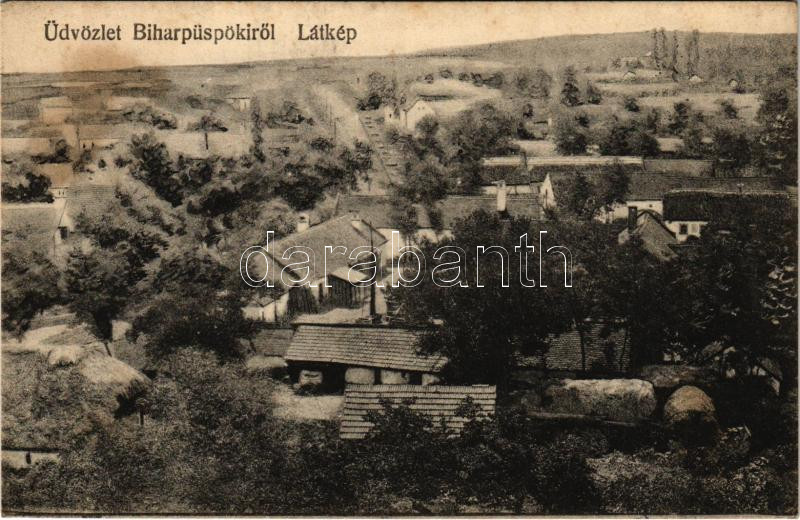 Beschreibung: Biharpüspöki, Bischof Bihar, Episcopia Bihor; látkép. Fogyasztási szövetkezet kiadása / general view (ragasztónyom / glue marks)