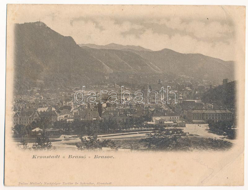 Brassó, Kronstadt, Brasov; Látkép a vasúti sínek felől. Julius Müller's Nachfolger Tartler & Schreiber / view from the railway tracks - hajtatlan panorámalap / unfolded panoramacard (17,9 x 14 cm) (EB)