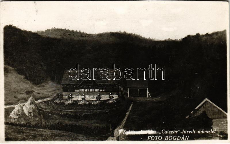 Csiszárfürdő (Kézdivásárhely, Targu Secuiesc), Csiszár Dénes szeszgyáros által épített Feredő a Bálványos alatt / Vedere din Bai Csiszár / spa resort. Foto Bogdán