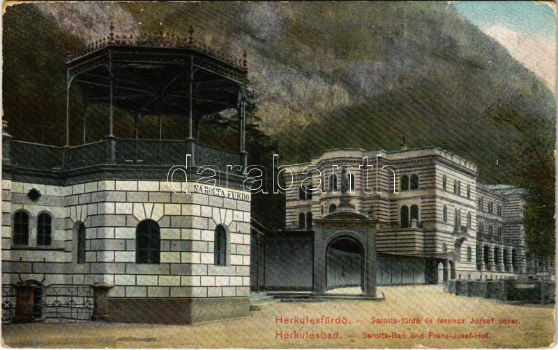 Herkulesfürdő, Herkulesbad, Baile Herculane; Sarolta fürdő és Ferenc J... https://www.darabanth.com/de/435-Fernauktion/435.0/Ansichtskarten/Siebenburgen~2500008/Herkulesfurdo-Herkulesbad-Baile-Herculane-Sarolta-furdo-es-Ferenc-Jozsef-udvar-spa-bath-~II2813309