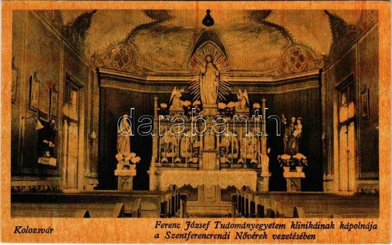 Kolozsvár, Cluj; M. kir. Ferenc József Tudományegyetem klinikáinak kápolnája a Szentferencrendi Nővérek vezetésében, belső / chapel of the university, interior (fl)