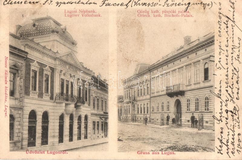 Lugos, Lugoj; Népbank, Görög katolikus püspöki palota. Nemes Kálmán ki... https://www.darabanth.com/de/435-Fernauktion/435.0/Ansichtskarten/Siebenburgen~2500008/Lugos-Lugoj-Nepbank-Gorog-katolikus-puspoki-palota-Nemes-Kalman-kiadasa-bank-church-~II1615982