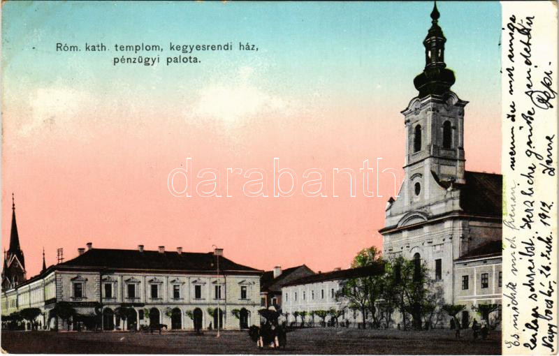 Máramarossziget, Sighet, Sighetu Marmatiei; Római katolikus templom, Kegyesrendi ház, pénzügyi palota, Koncs Antal üzlete / church, financial palace, shop