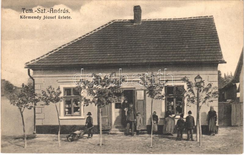 Temesszentandrás, Sanandrei; Körmendy József üzlete / shop of József K... https://www.darabanth.com/de/435-Fernauktion/435.0/Ansichtskarten/Siebenburgen~2500008/Temesszentandras-Sanandrei-Kormendy-Jozsef-uzlete-shop-of-Jozsef-Kormendy~II2302027