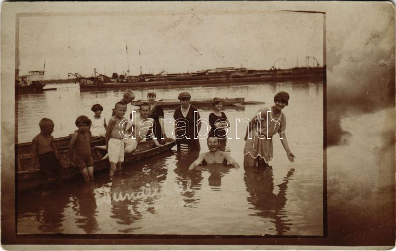 1920 Komárom, Komárnó (?); Dunai idill, fürdőzők, uszályok / bathing i... https://www.darabanth.com/de/435-Fernauktion/435.0/Ansichtskarten/Slowakei~2500007/1920-Komarom-Komarno-Dunai-idill-furdozok-uszalyok-bathing-in-the-Danube-barges-p~II2819125