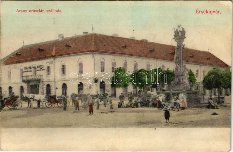 Érsekújvár, Nové Zámky; Arany oroszlán szálloda, Szentháromság szobor.... https://www.darabanth.com/de/435-Fernauktion/435.0/Ansichtskarten/Slowakei~2500007/Ersekujvar-Nove-Zamky-Arany-oroszlan-szalloda-Szentharomsag-szobor-Grunhut-Zsigmond-ki~II2819444