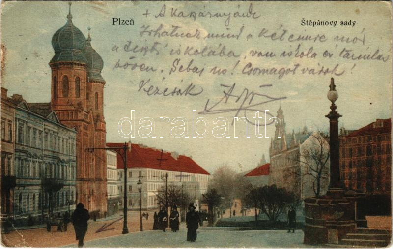 1916 Plzen, Pilsen; Stepanovy sady / zsinagóga / synagogue (EK) https://www.darabanth.com/de/435-Fernauktion/435.0/Ansichtskarten/Tschechische-Republik~2500031/1916-Plzen-Pilsen-Stepanovy-sady-zsinagoga-synagogue-EK~II2818724