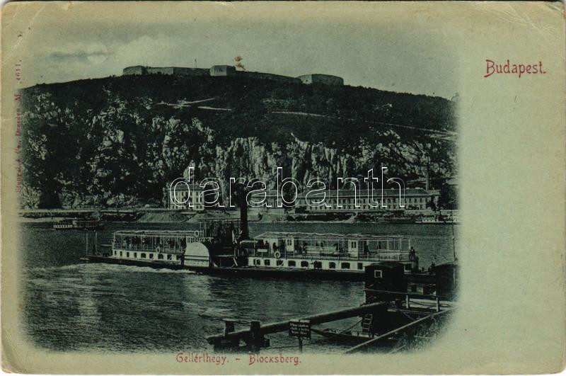 Beschreibung: 1898 (Vorläufer) Budapest XI. Gellérthegy, Citadella, "HATTYÚ" gőzhajó (EB)